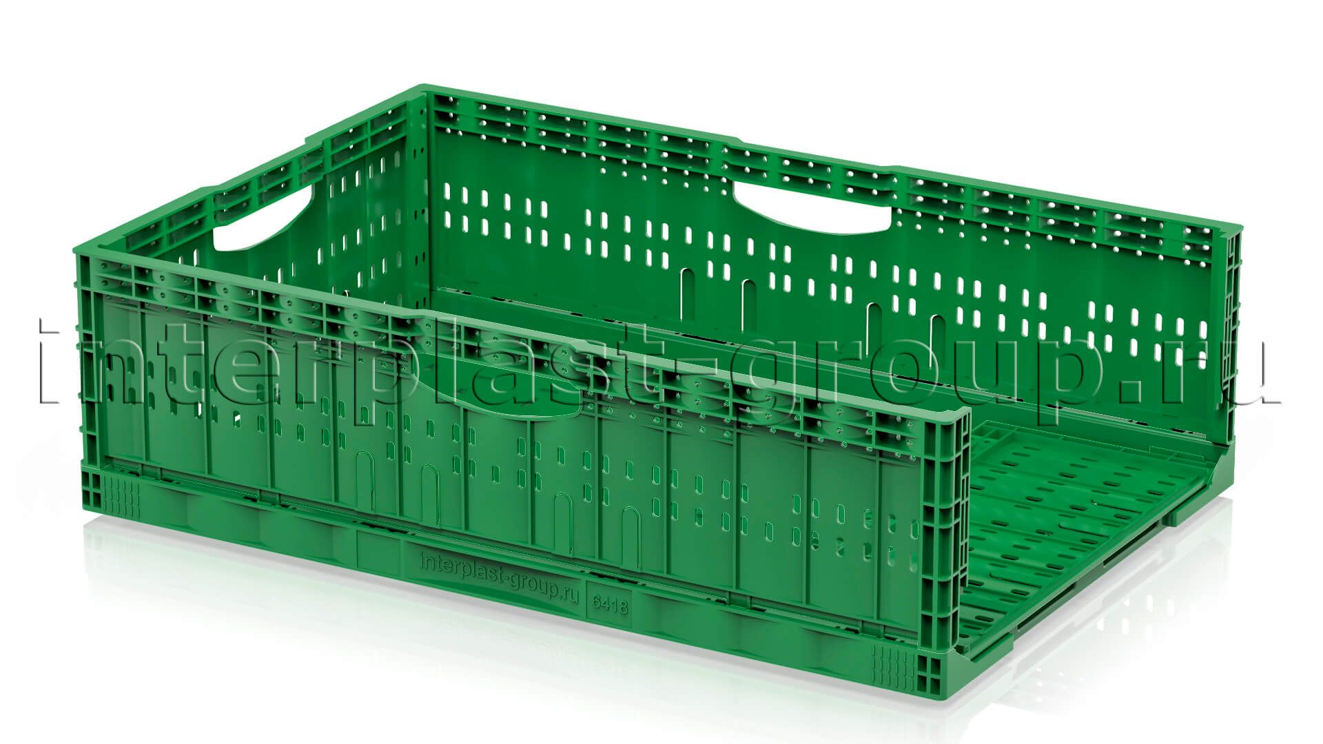 Складные ящики разработаны и спроектированы для хранения и перемещения плодо-овощных культур как внутри производства, так и между торговыми точками и складами. Благодаря функции складывания значительно экономят место при использовании в качестве возвратной тары. Перфорированные стенки обеспечивают сохранение свежести и сочность продуктов перфорации абсолютно на всех стадиях логистики. Штабелируются на паллетах 1200х1000 и 1200х800.